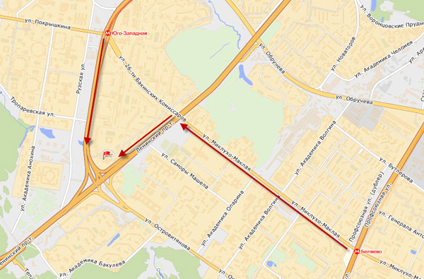 М. Юго-западная – проезд автобусами: 66, 227, 281, 611, 642, 707, 802, до остановки "гостиница Салют"